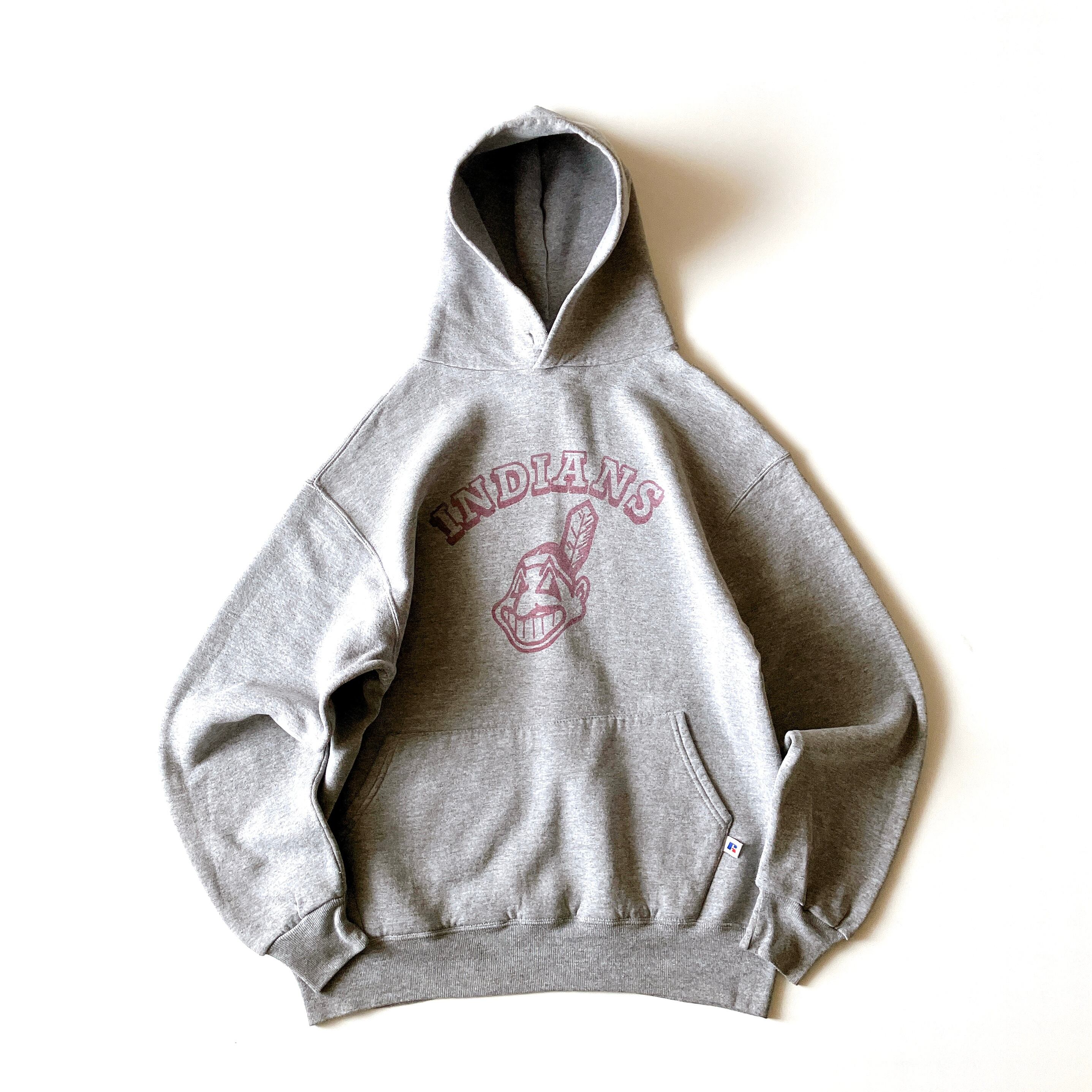 90's Russell Athletic sweat shirt "INDIANS" made in USA ラッセルアスレチック パーカー アメリカ製 染み込みプリント