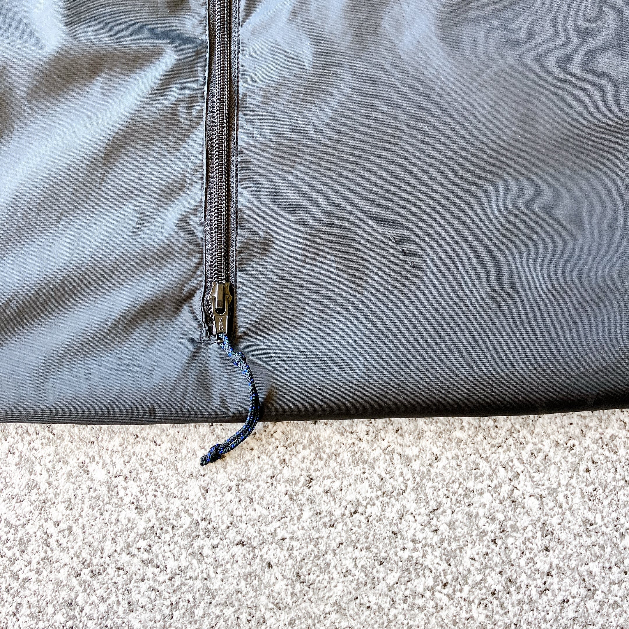 多少の使用感。前面右ポケット横付近に小ダメージ(表面のみで貫通していません)。背面中央右付近に小ダメージ。